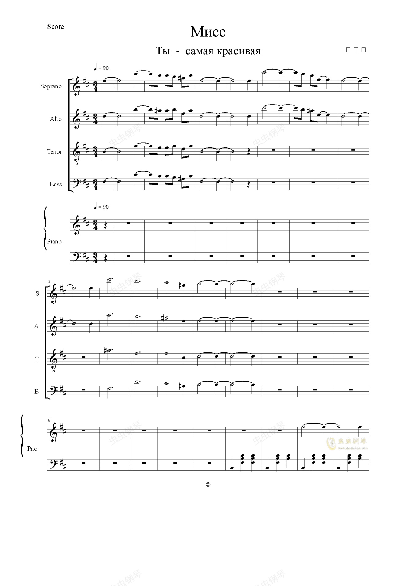 钢琴谱:我爱俄罗斯