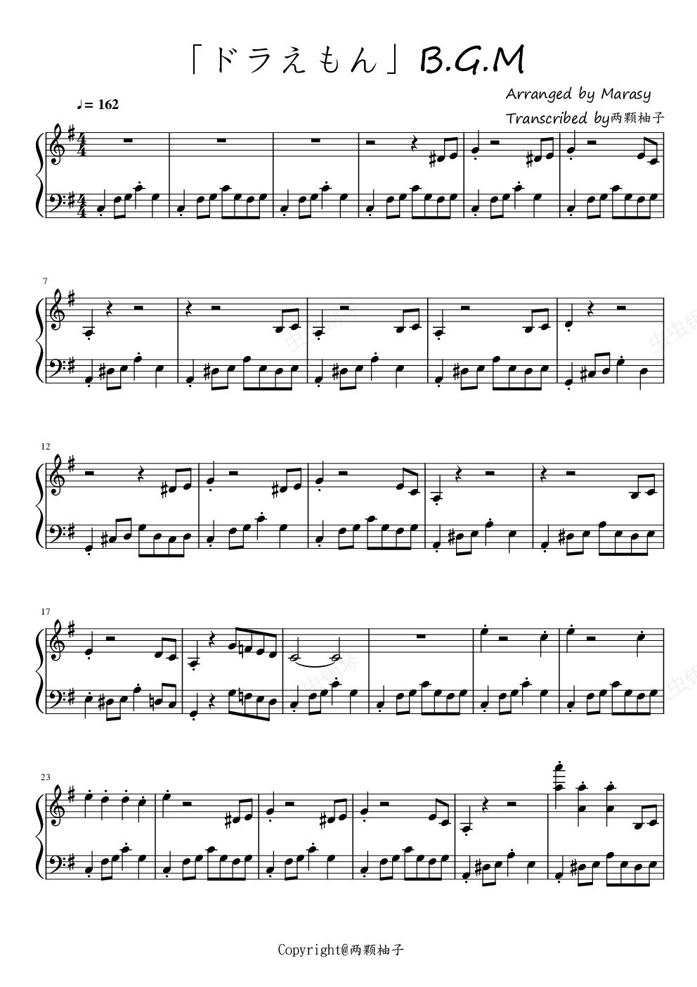 钢琴谱:【触手猴】「ドラえもん」B.G.M