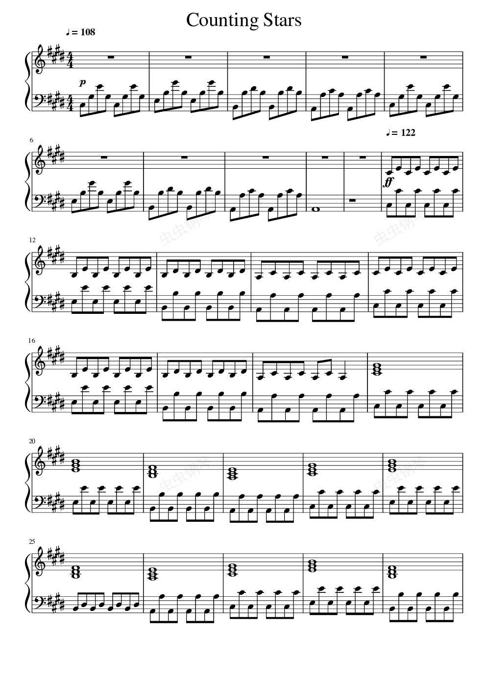 钢琴谱:Counting Stars