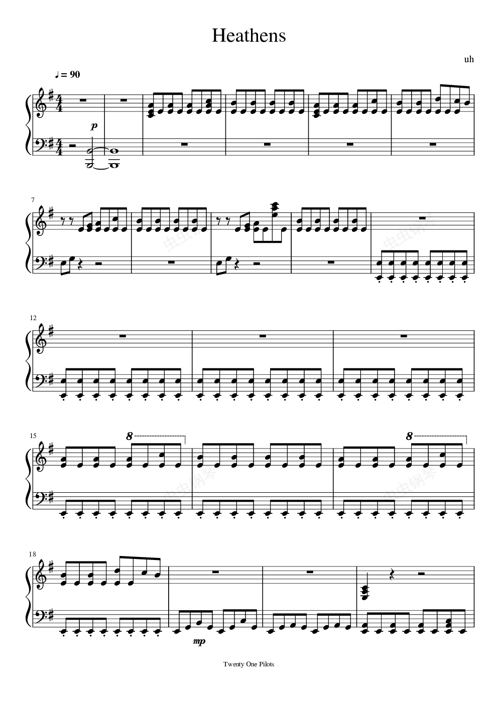 钢琴谱:Heathens