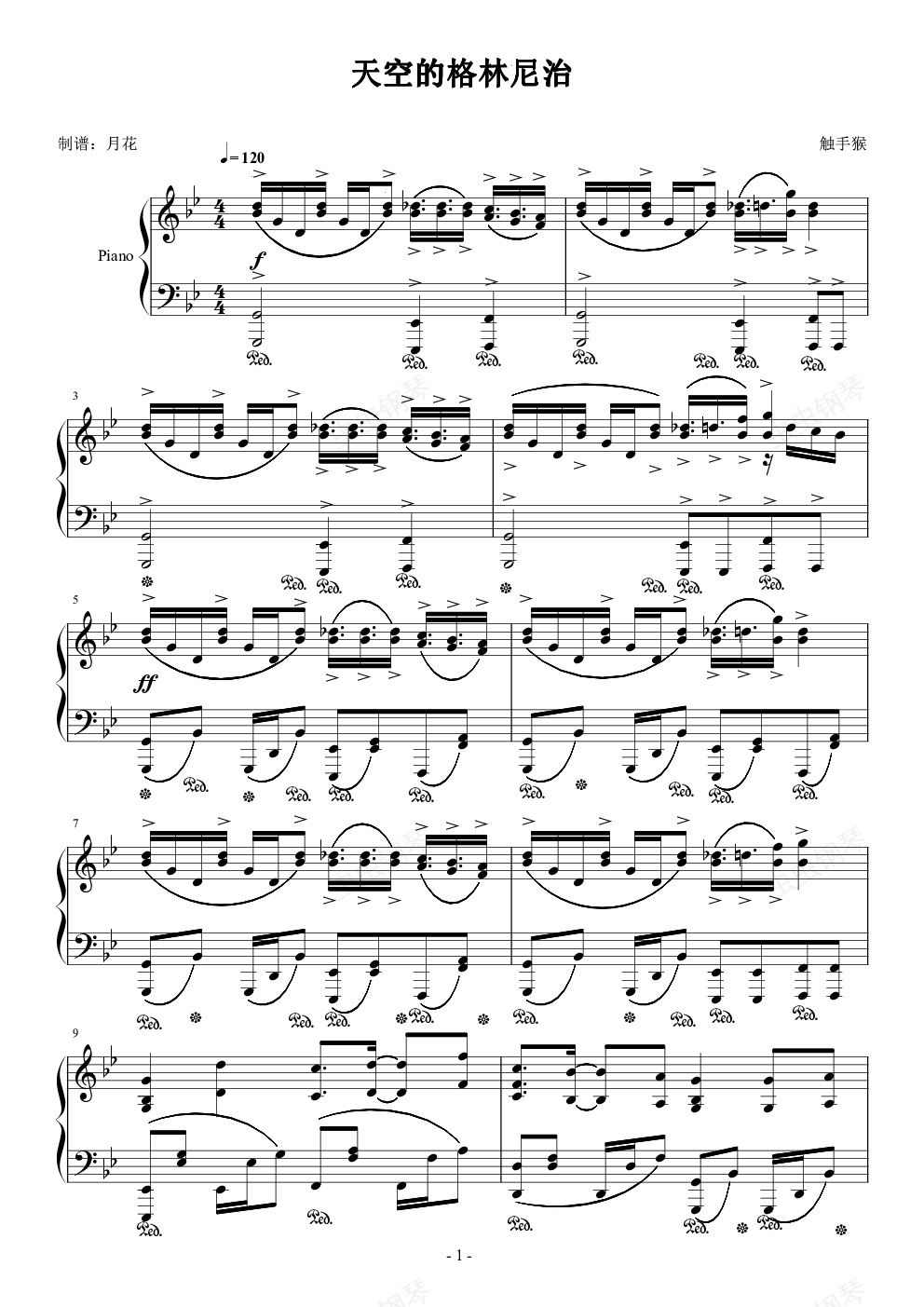 钢琴谱:触手猴 幻想游戏《雅》天空的格林尼治