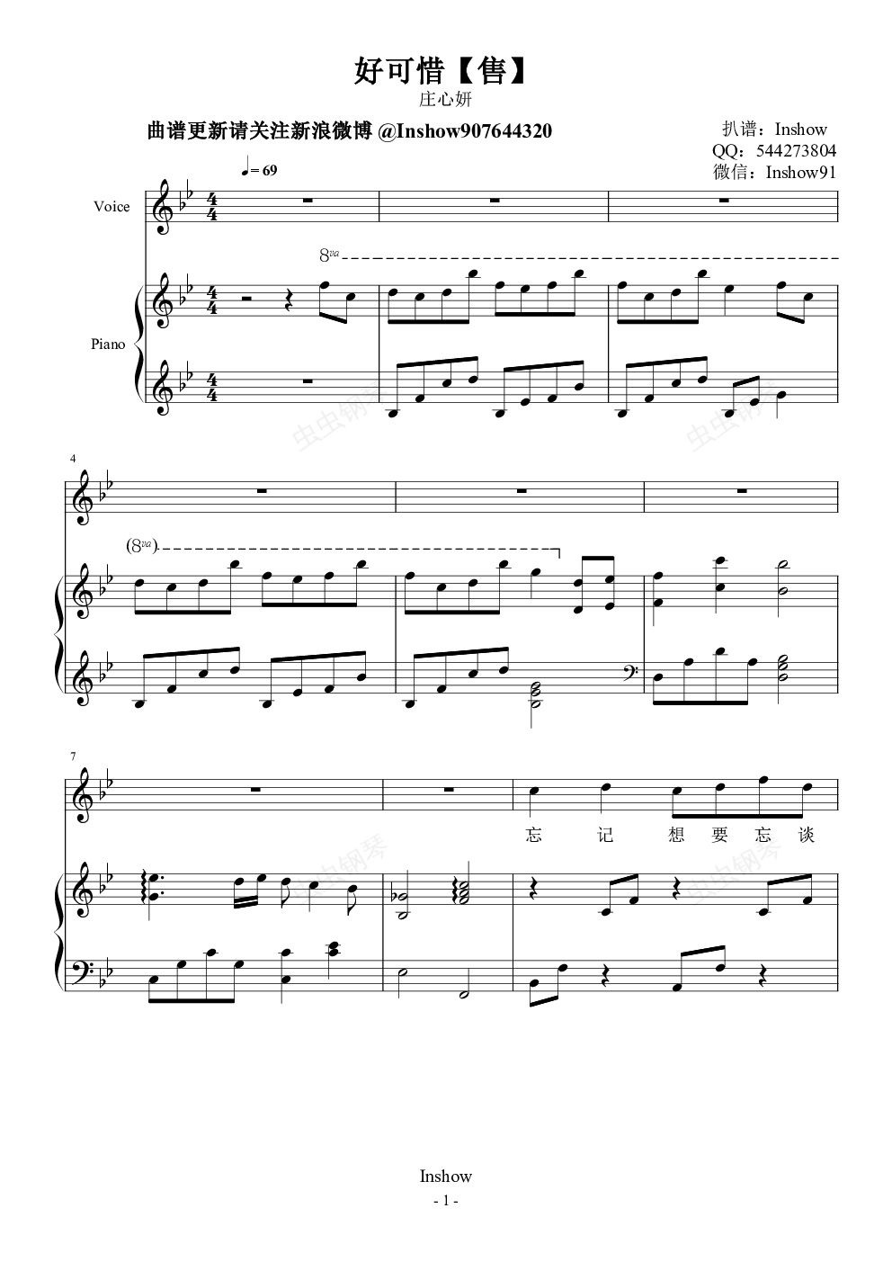 钢琴谱:庄心妍 - 好可惜 [弹唱谱] - 试听版