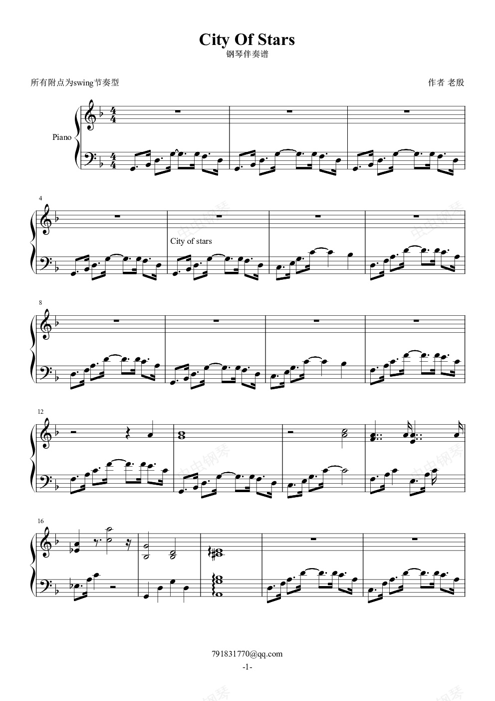 钢琴谱:City of stars 原版钢琴伴奏谱