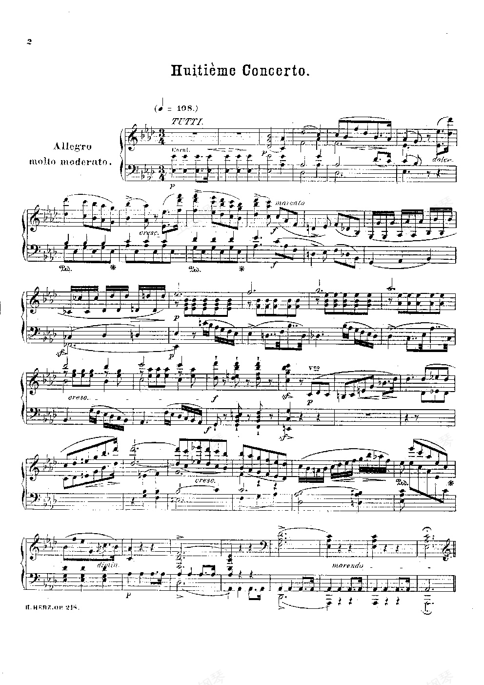 钢琴谱:赫尔兹  降A大调第八钢琴协奏曲   Op.218