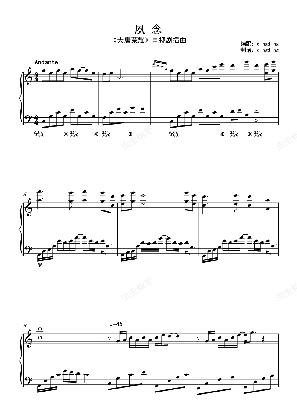 钢琴谱:夙念 大唐荣耀插曲