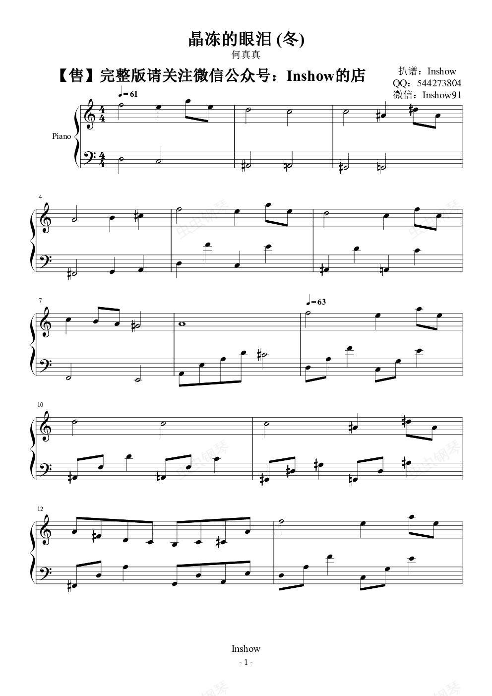 钢琴谱:何真真 - 晶冻的眼泪 (冬) [纯音乐]【样本】