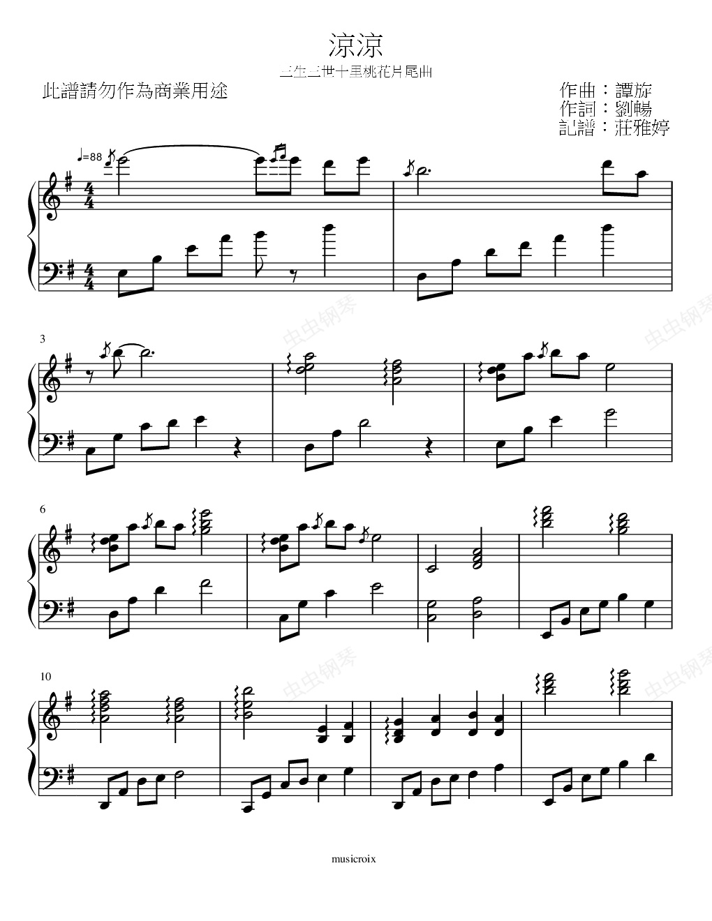 三生三世十里桃花片尾曲涼涼,本曲譜僅供音樂交流使用,請勿用於商業用途!第一次發譜,如有不好的地方也請多多指教!