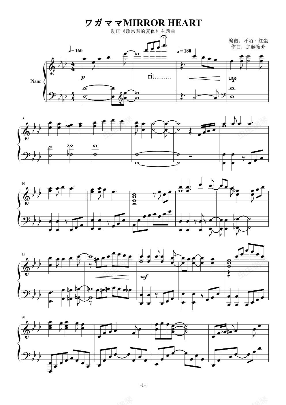 新坑终于填完,花了扒谱花了好几天,这歌某些地方的节奏很奇怪,反复听了X遍,终于把节奏对上了,然后伴奏配的就比较随意了。    尽管本着尽量还原的原则,但是副歌的地方感觉纯钢琴的时候转得非常不舒服,然而也没找到什么好的解决办法,就只能将就一下,或者dalao过来给点建议呀。    如果有什么好的建议或者意见,或者谱面、编配等方面有问题,欢迎留言。    PS1:更改了部分伴奏    [IMG]/pu/2017/3/4/__6681__[/IMG]