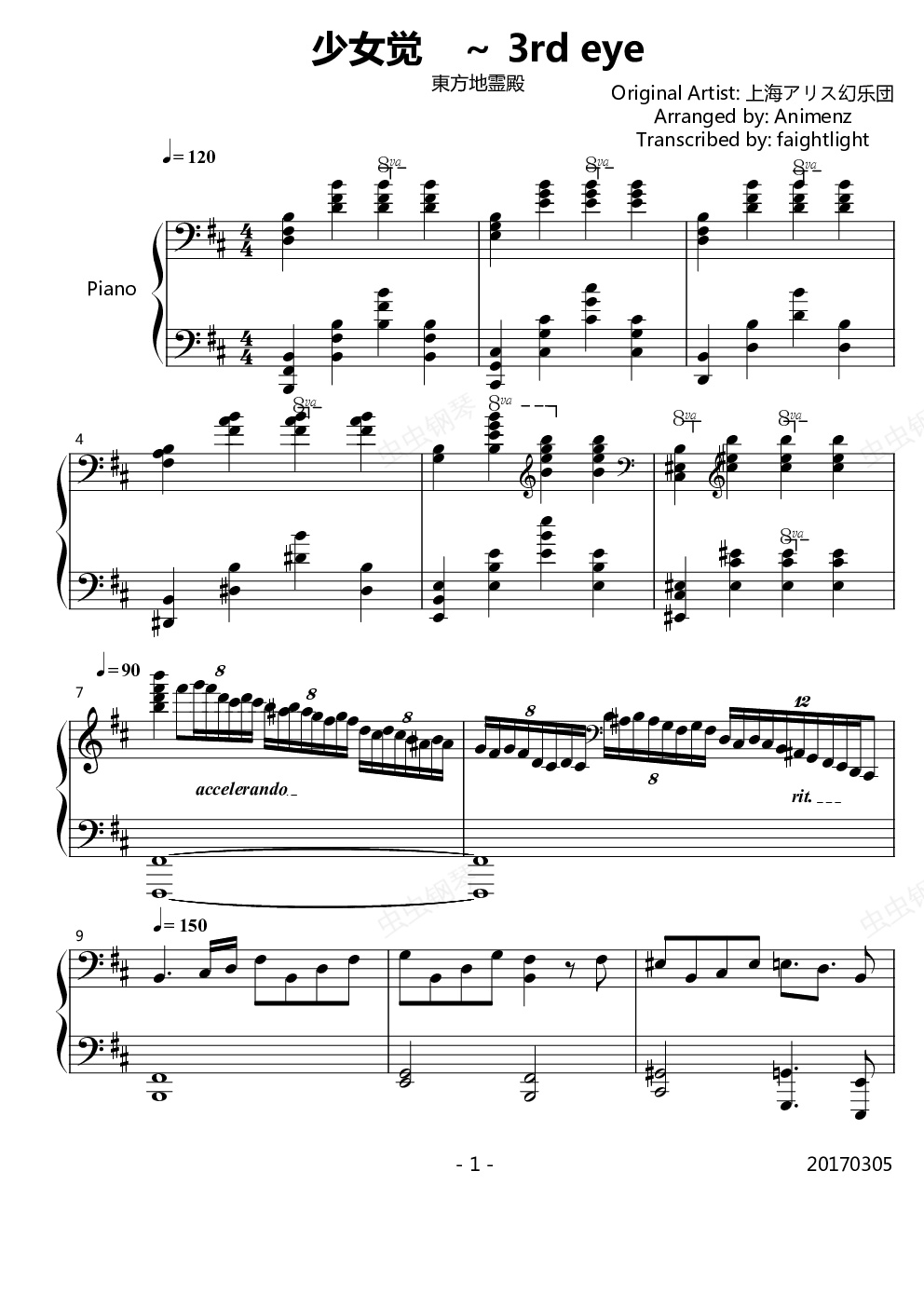 钢琴谱:【Animenz】少女觉 ~ 3rd eye