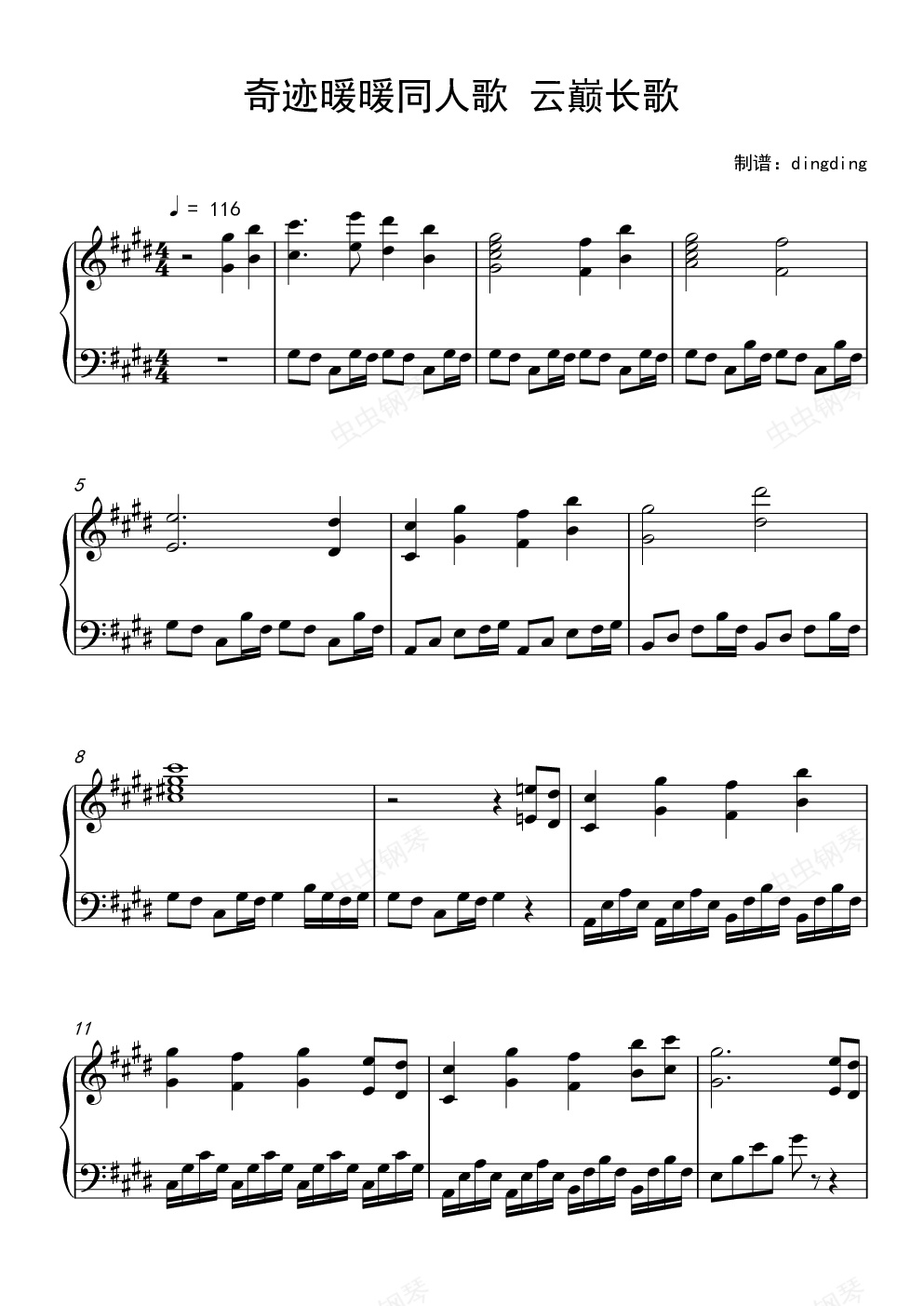 钢琴谱:奇迹暖暖同人歌 云巅长歌