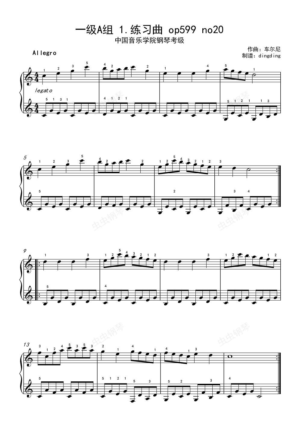 钢琴谱:中国音乐学院考级 一级A组 1 练习曲 op599 no20