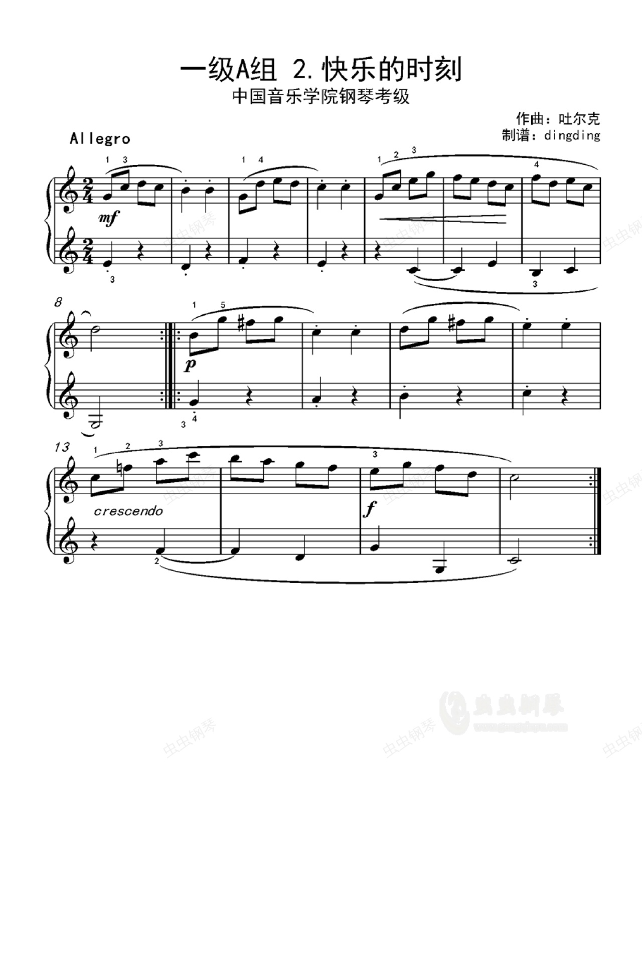 钢琴谱:中国音乐学院考级 一级A组 2.快乐的时刻
