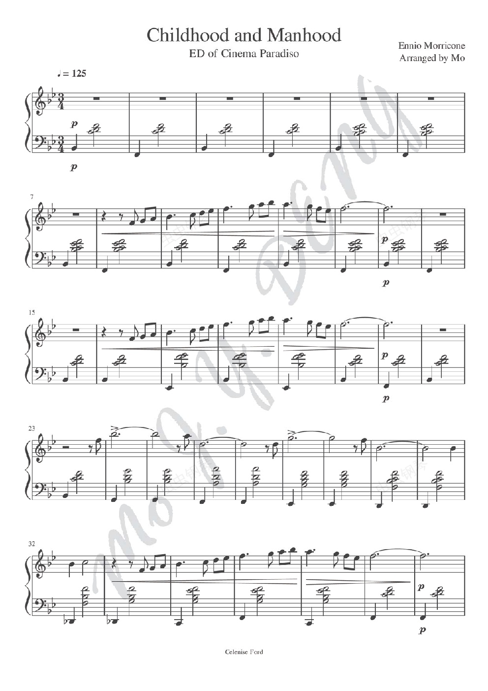 钢琴谱:Childhood and Manhood - ED of Cinema Paradiso (天堂电影院片尾曲)