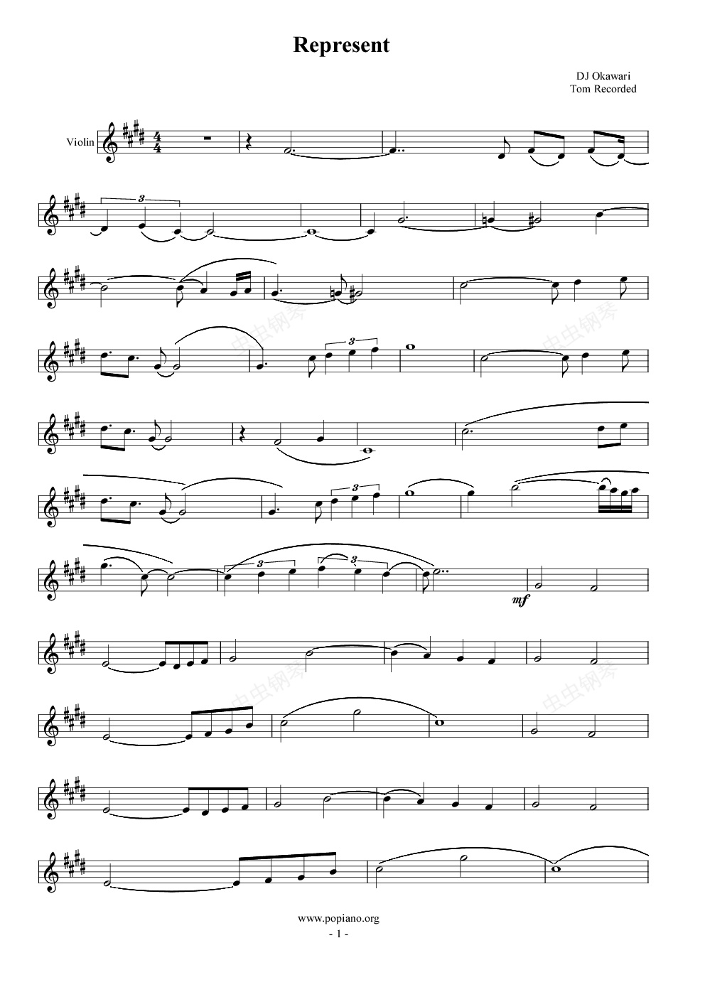 钢琴谱:Represent - Dj Okawari (小提琴分谱)