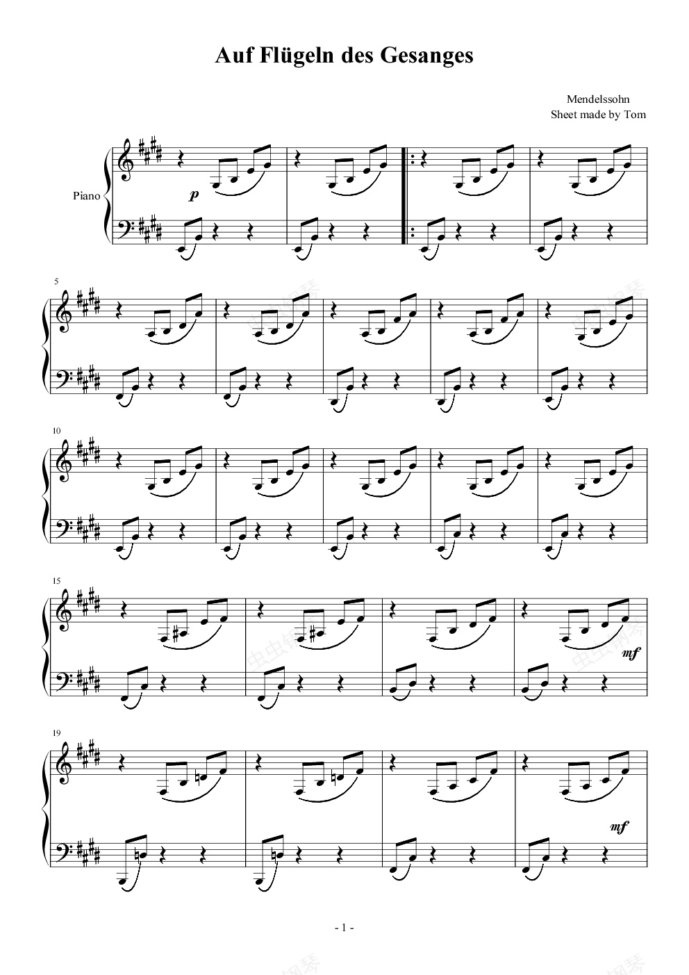 钢琴谱:乘着歌声的翅膀 门德尔松 (钢琴分谱)