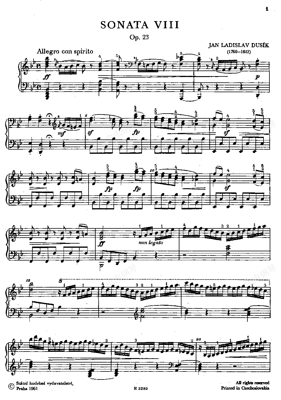 杜舍克 降B大调第八钢琴奏鸣曲 Op.23