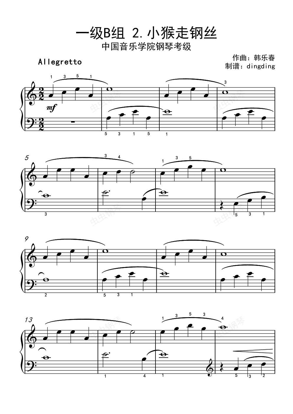 钢琴谱:中国音乐学院考级一级B组 2.小猴走钢丝