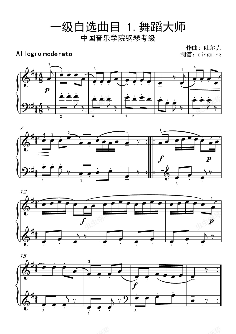 钢琴谱:中国音乐学院考级一级自选曲目 1.舞蹈大师