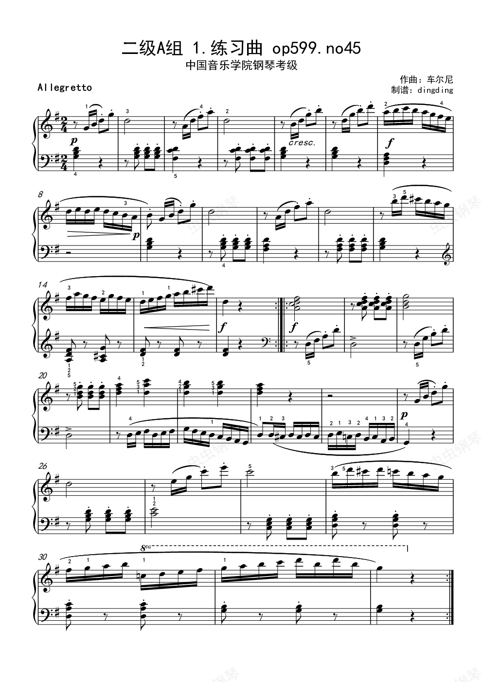 钢琴谱:中国音乐学院考级二级A组 1 练习曲 op599 no45