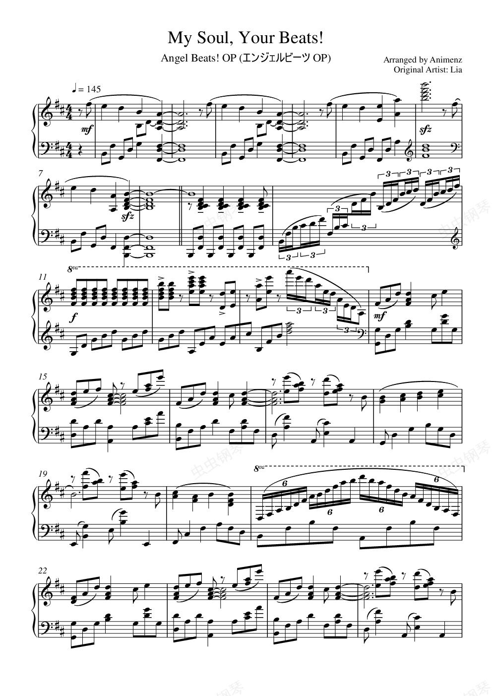 钢琴谱:【Animenz】My Soul, Your Beats! x 一番の宝物