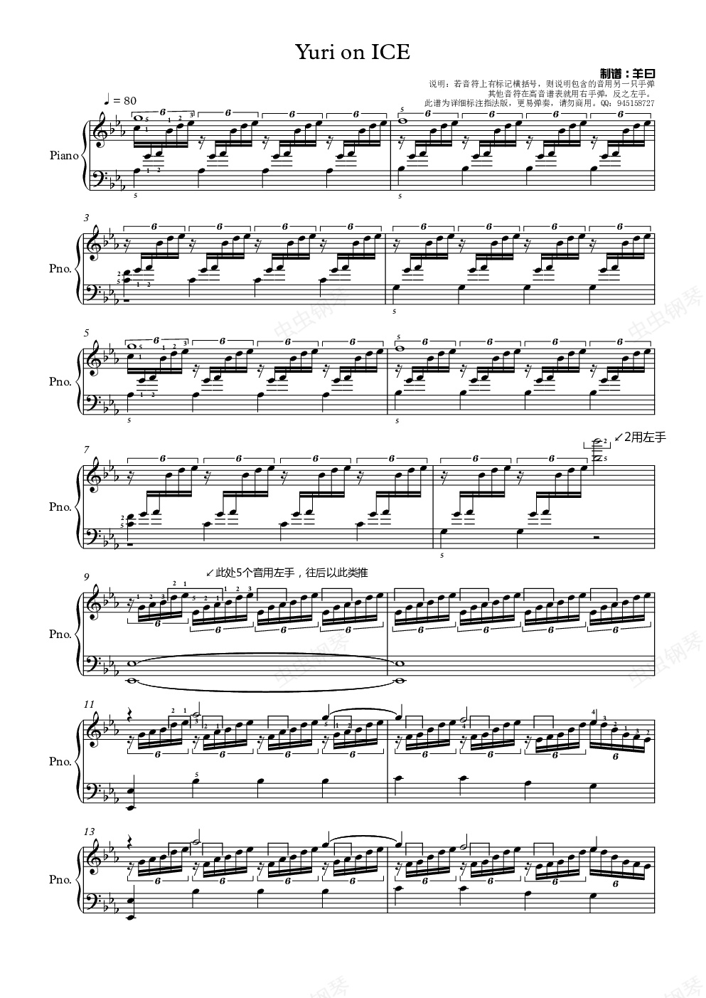 钢琴谱:《Yuri on ICE》钢琴独奏带指法版