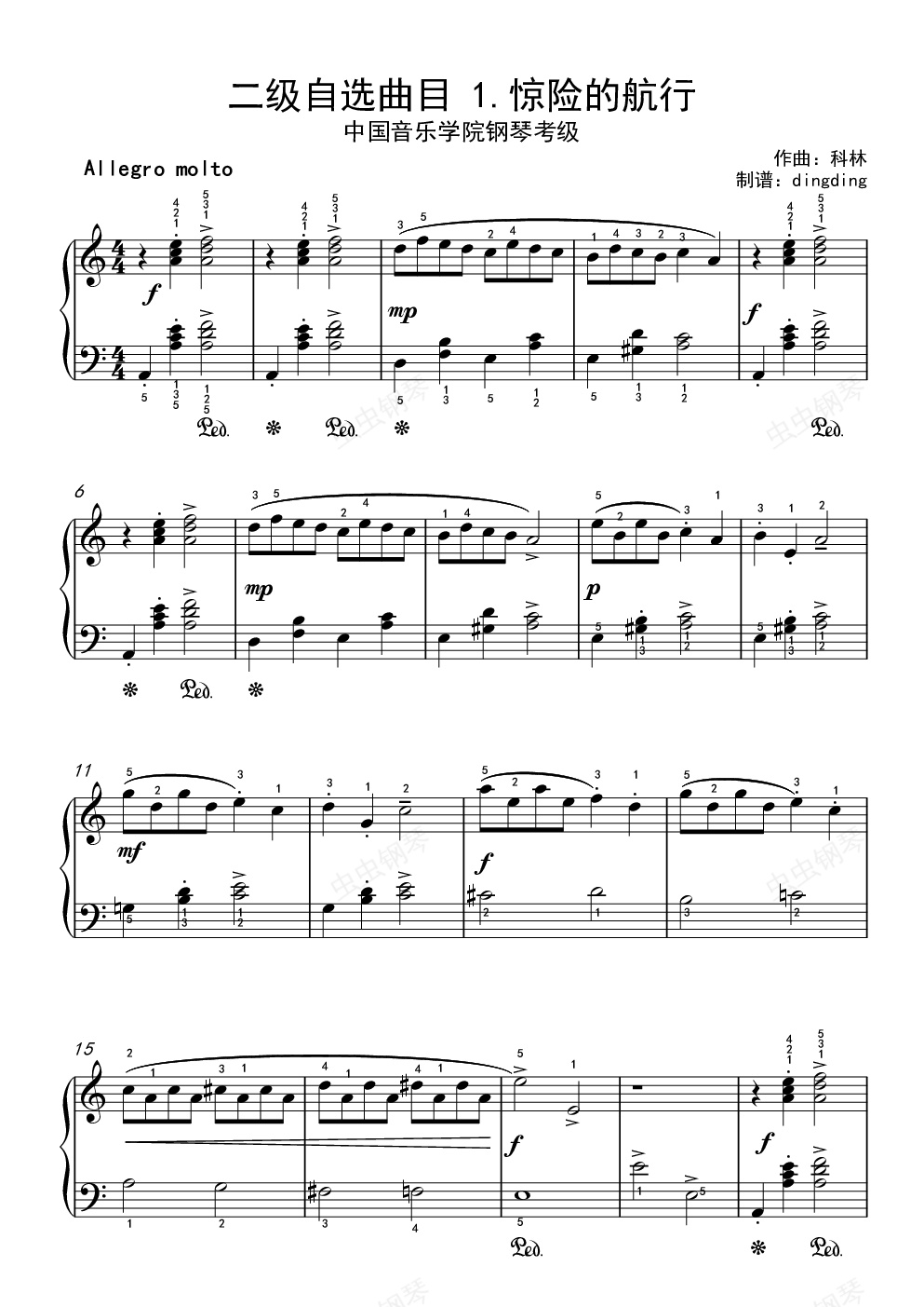 钢琴谱:中国音乐学院考级二级自选曲目 1.惊险的航行