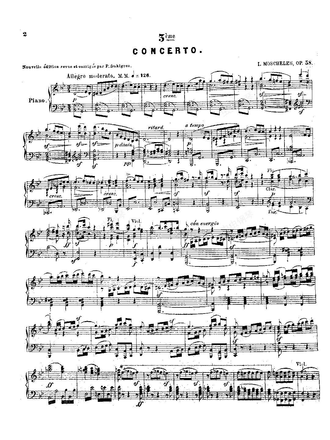钢琴谱:莫谢莱斯 g小调第三钢琴协奏曲 Op.58