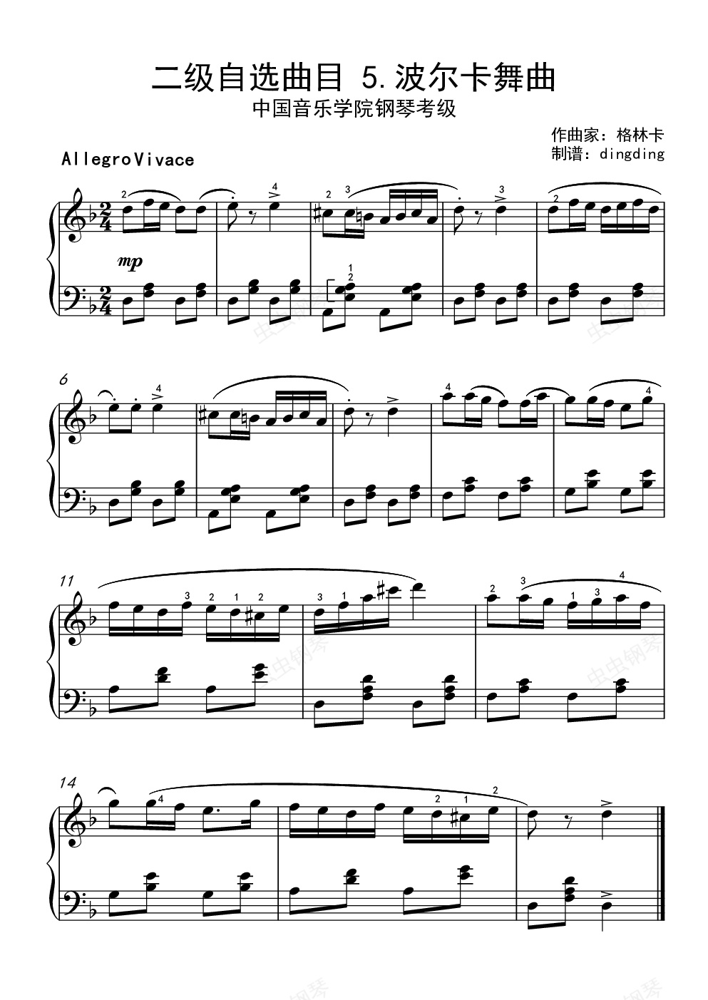 钢琴谱:中国音乐学院考级二级自选曲目 5.波尔卡舞曲