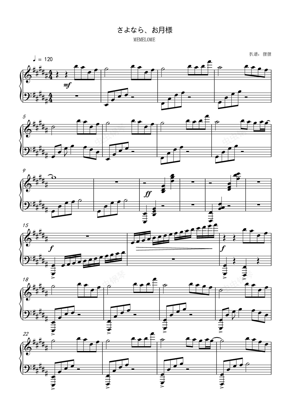 钢琴谱:さよなら、お月様