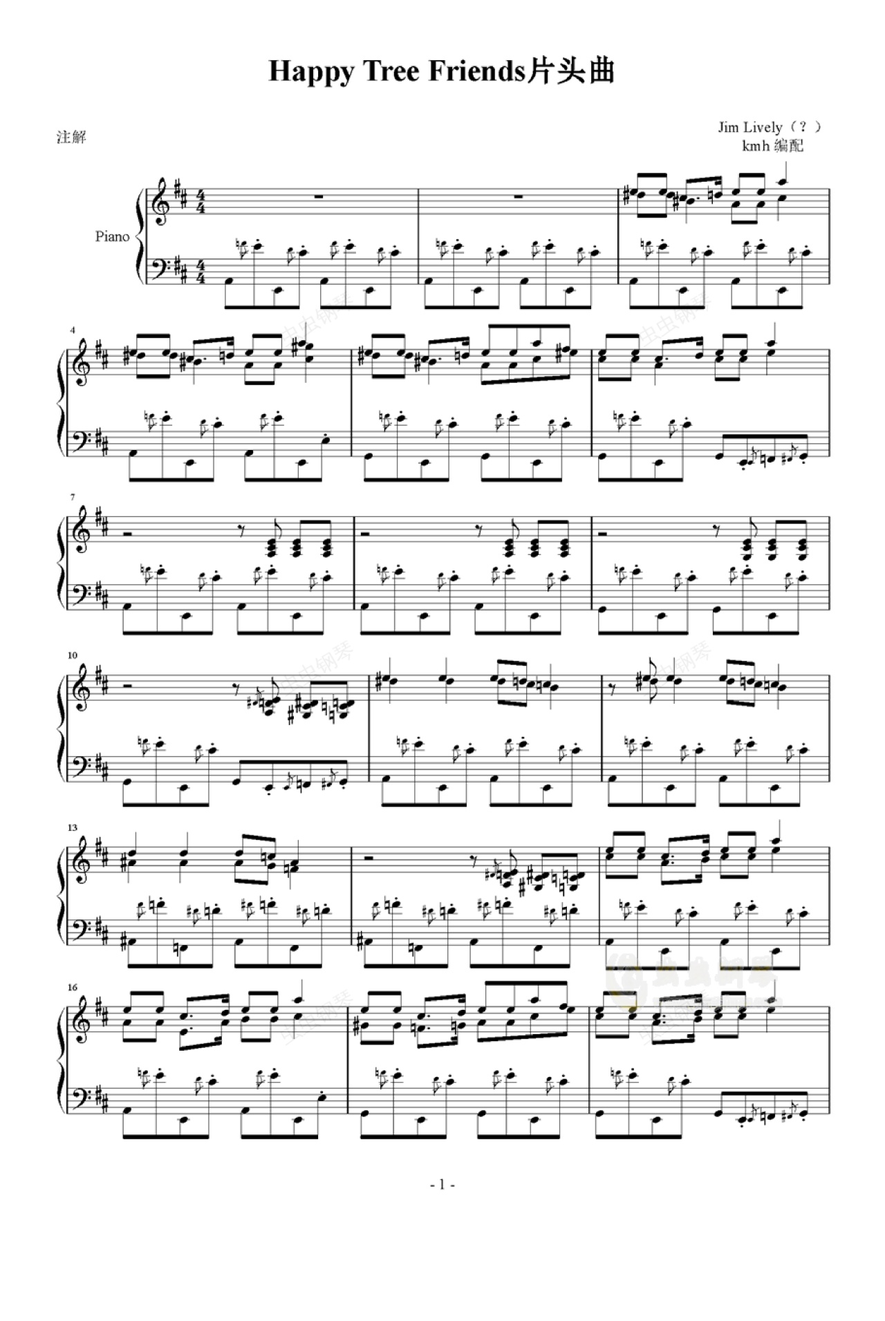 钢琴谱:happy tree friends片头曲