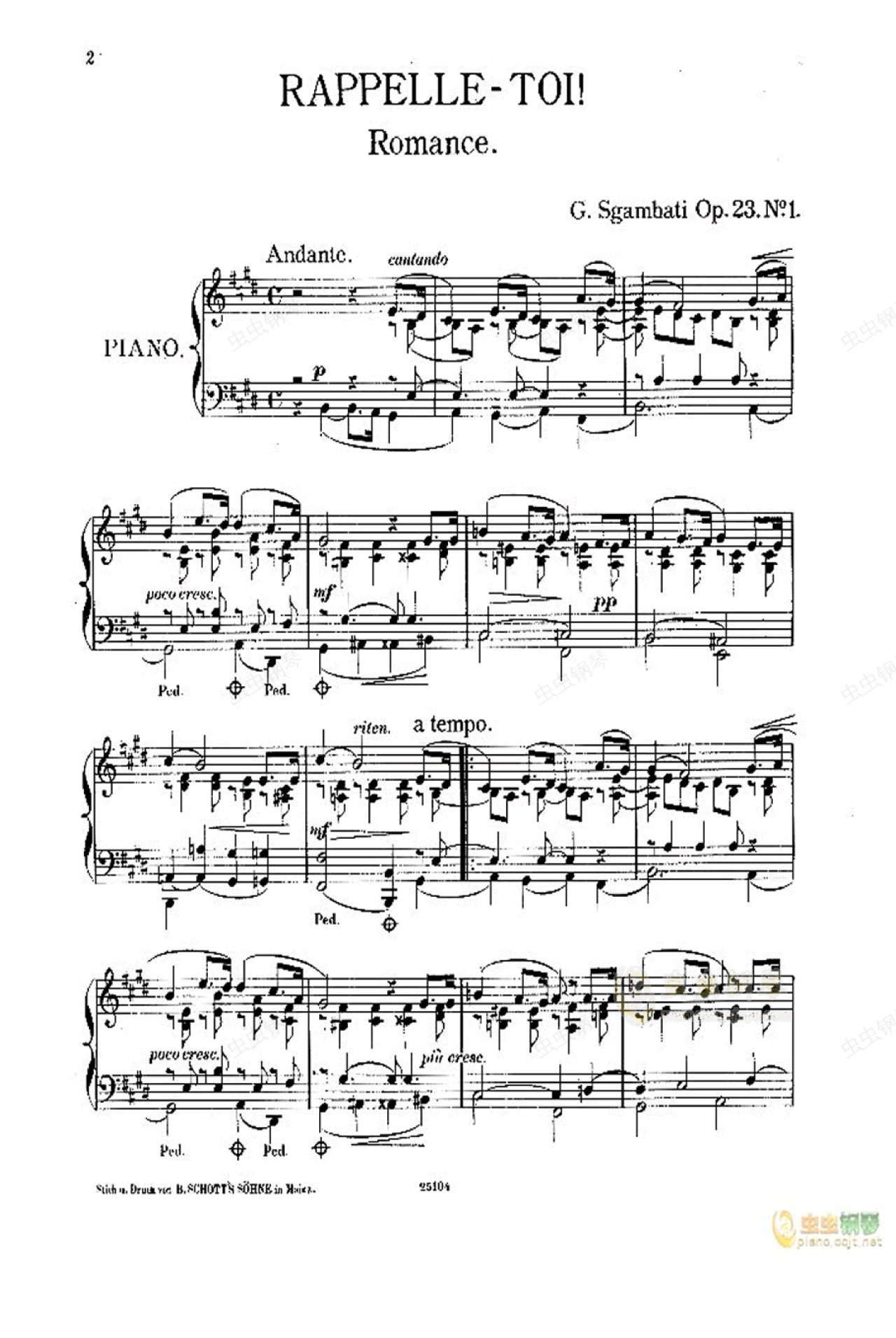 钢琴谱:斯甘巴蒂 铭记你 (浪漫曲) Op.23 No.1
