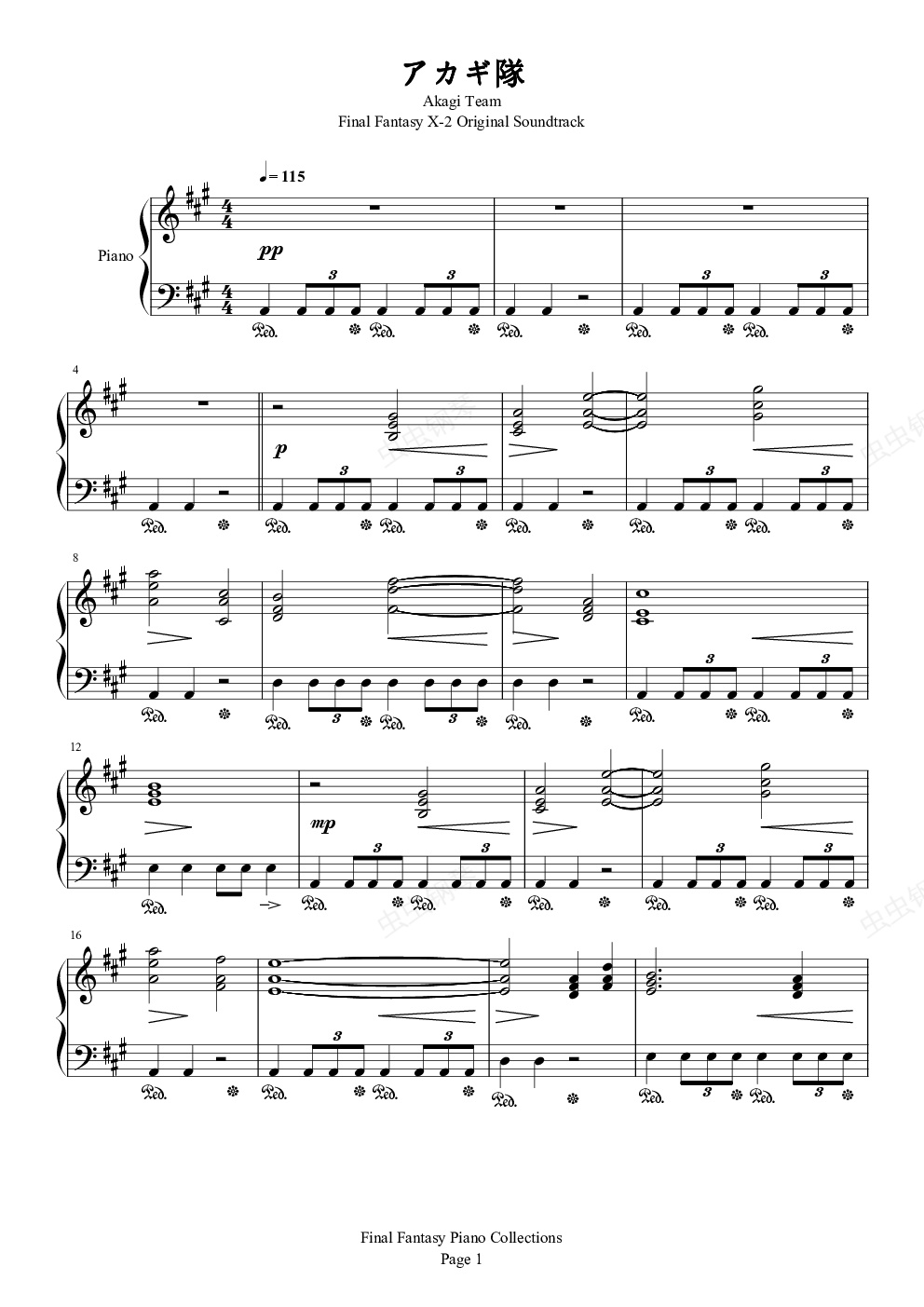 钢琴谱:アカギ隊