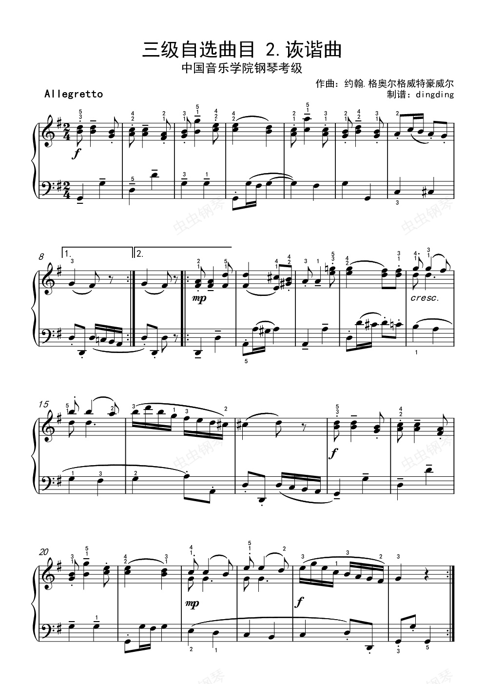 钢琴谱:中国音乐学院考级三级自选曲目 2.诙谐曲