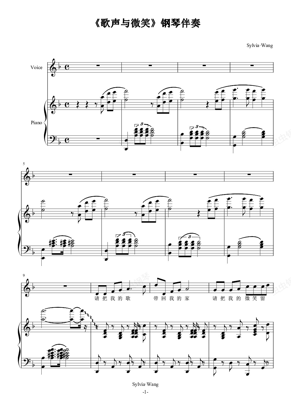 钢琴谱:歌声与微笑合唱伴奏