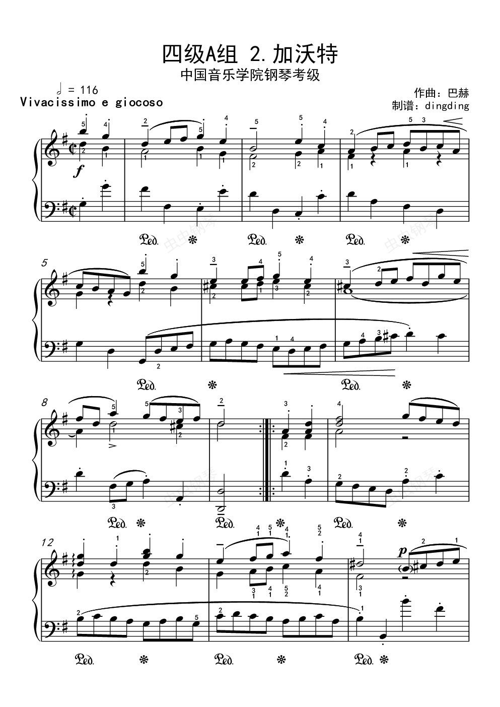 钢琴谱:中国音乐学院考级四级A组 2 加沃特