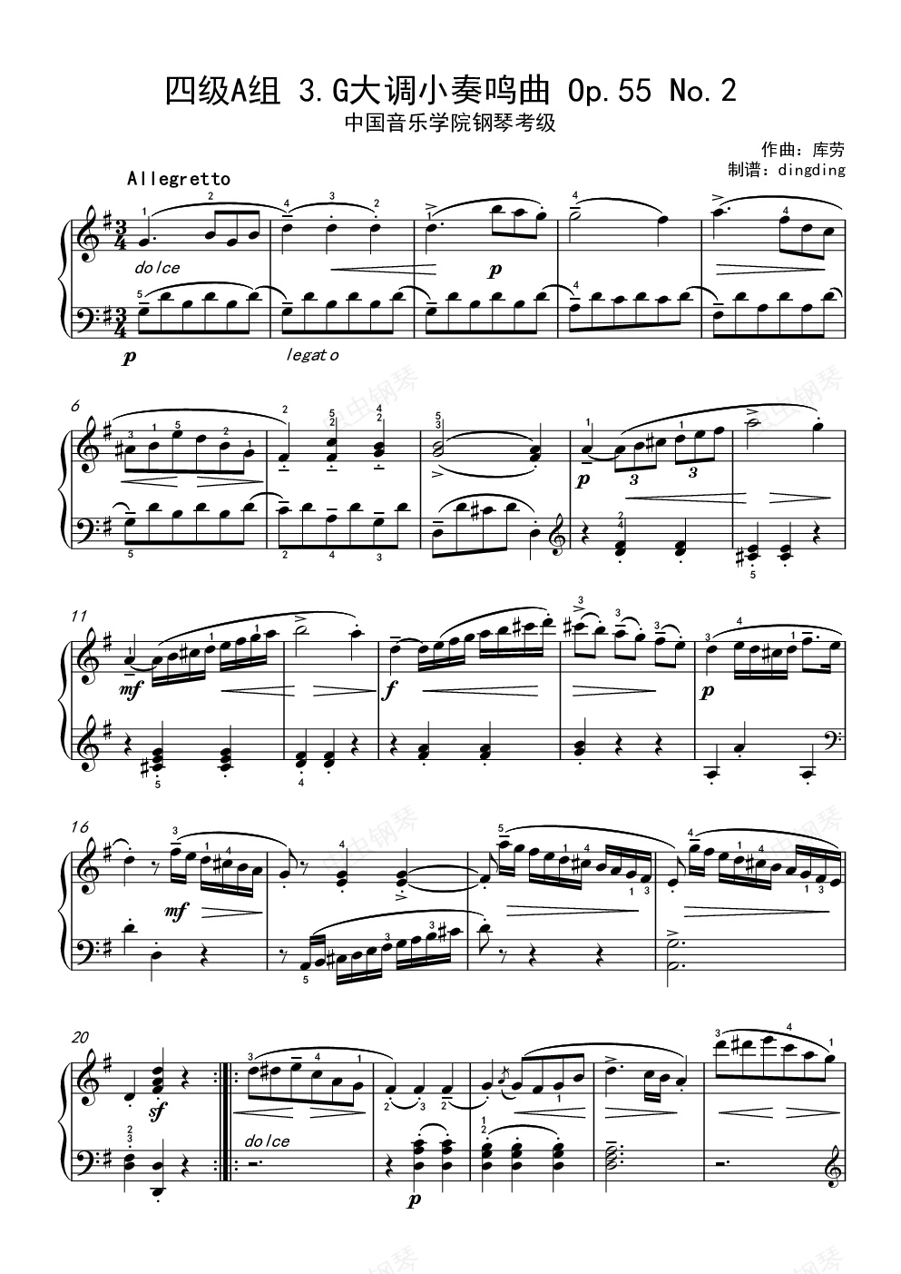 钢琴谱:中国音乐学院考级四级A组 3.G大调小奏鸣曲 Op.55 No.2