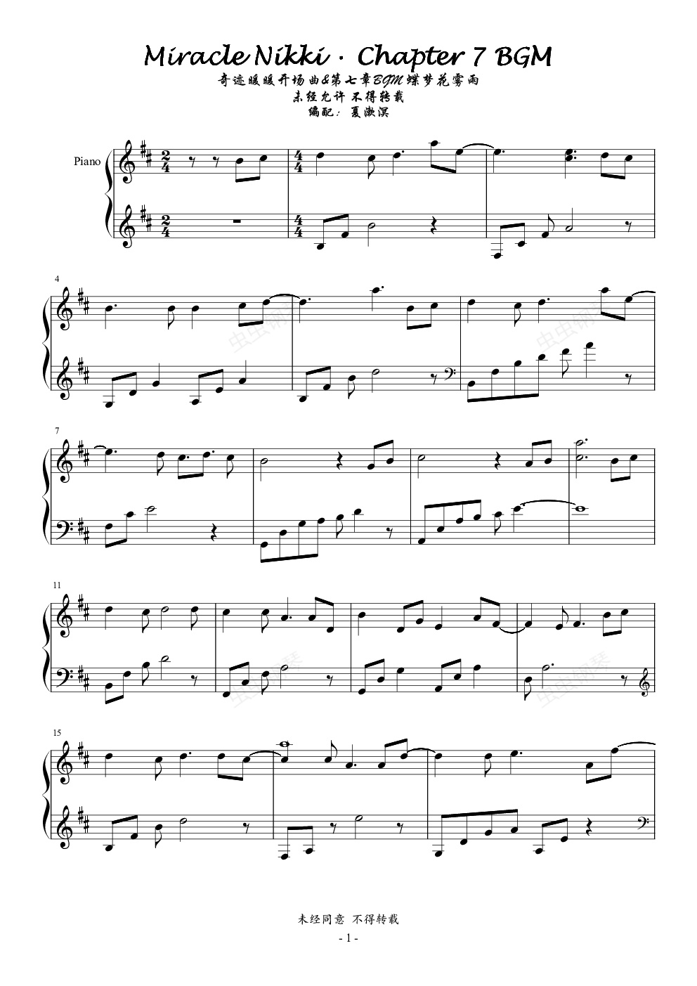 钢琴谱:奇迹暖暖·第七章BGM 蝶梦花雾雨