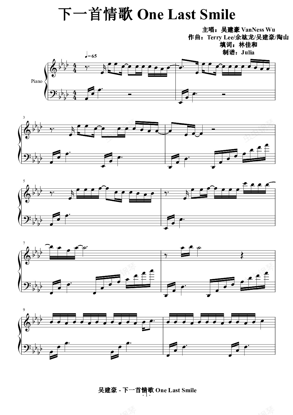 放了烟火放不过寂寞 安静总在人最多时候闯祸 怎么忘了那年最美的花朵 谈过了太多只弹了前奏 回头再看这份爱没有停过 想要从头时间拼命闪躲 都没有错 只是幸福早已渐渐褪色 话题没了 雨也满了熄灭了快乐 要伤几次 才能演好过渡的角色 爱没了和弦 怎么唱合下一首情歌 One last smile 退回到陌生人的距离 假装不听不看谈何不容易 One last smile 只剩下回忆片段练习 一点一滴拼凑着说恨自己 下一首情歌 是什么风格 再一首情歌 独唱还是合 放了烟火放不过寂寞 安静总在人最多时候闯祸 怎么忘了那年最美的花朵 谈过了太多只弹了前奏 回头再看这份爱没有停过 Sugar 都没有错 只是幸福早已渐渐褪色 话题没了 雨也满了熄灭了快乐 要伤几次 才能演好过渡的角色 爱没了和弦 怎么唱合 下一首情歌 One last smile 退回到陌生人的距离 假装不听不看谈何不容易 One last smile 只剩下回忆片段练习 一点一滴拼凑着说恨自己 All we got is one last smile we say bye One last smile we say bye One last smile we say bye One last smile 退回到陌生人的距离 假装不听不看谈何不容易 One last smile 只剩下回忆片段练习 一点一滴拼凑着说恨自己 下一首情歌 是什么风格 再一首情歌 独唱还是合