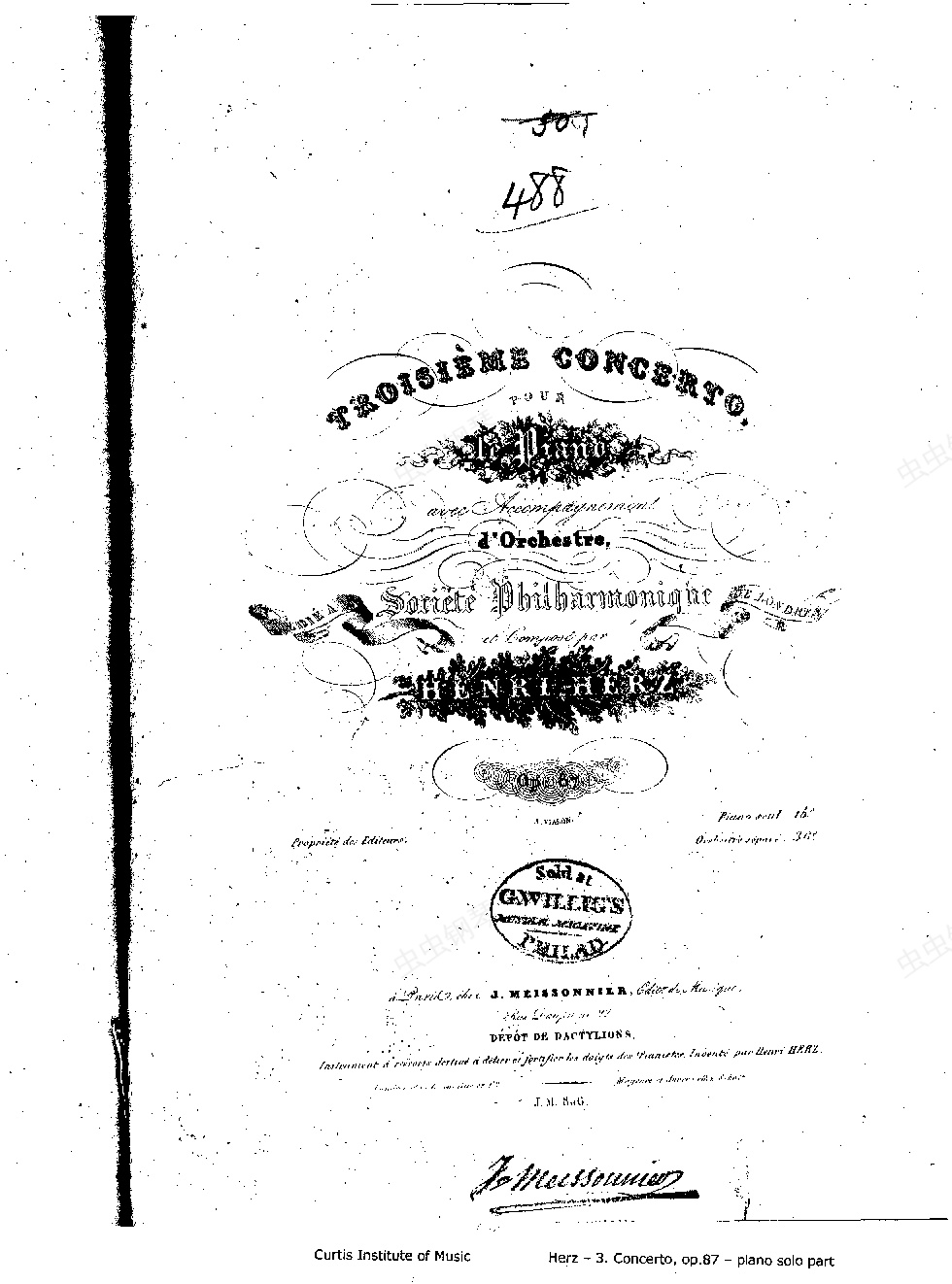 钢琴谱:赫尔兹    d小调第三钢琴协奏曲    Op.87