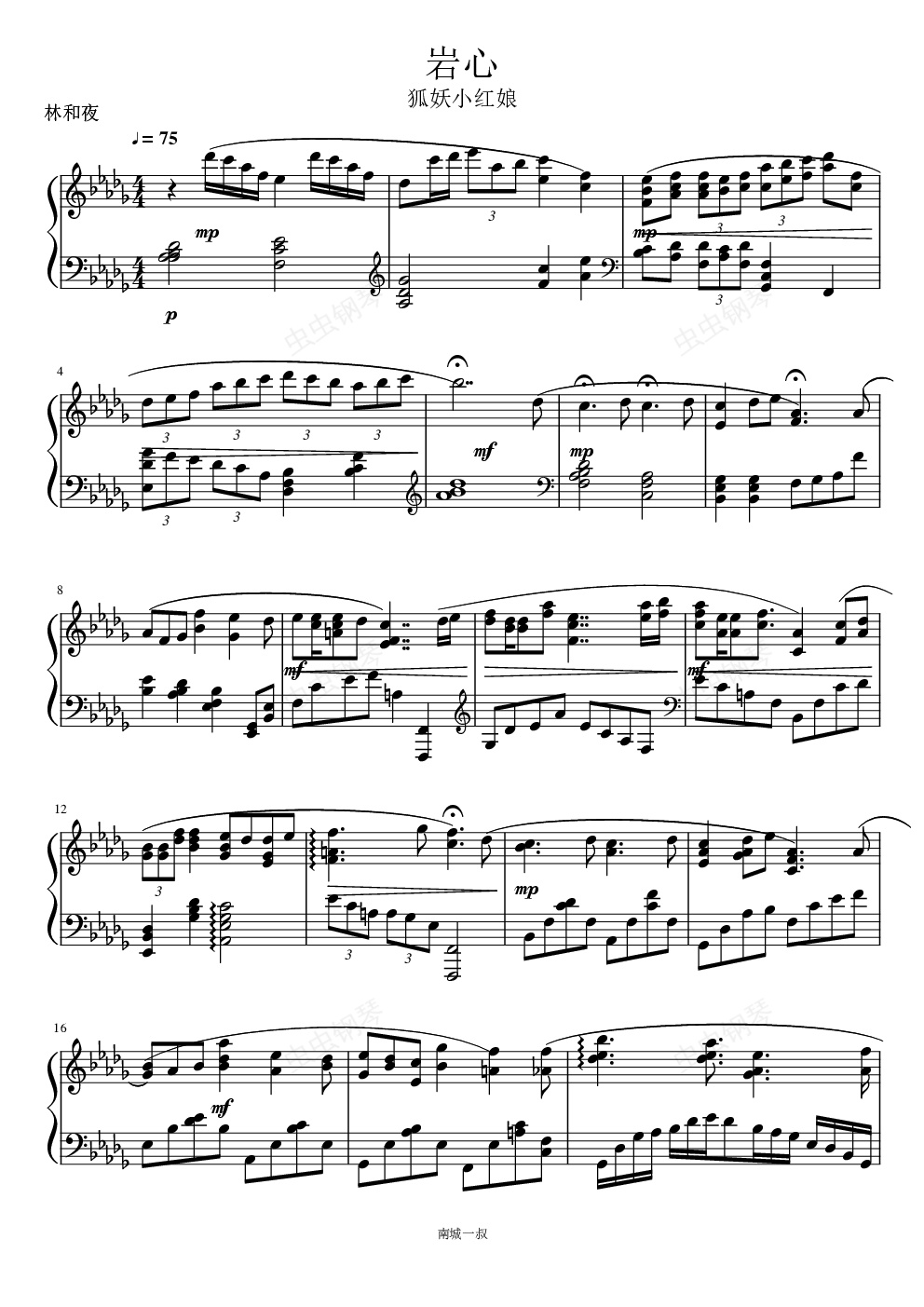 钢琴谱:岩心(狐妖小红娘阿宽篇)