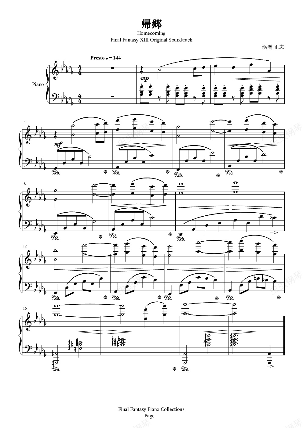 钢琴谱:帰郷