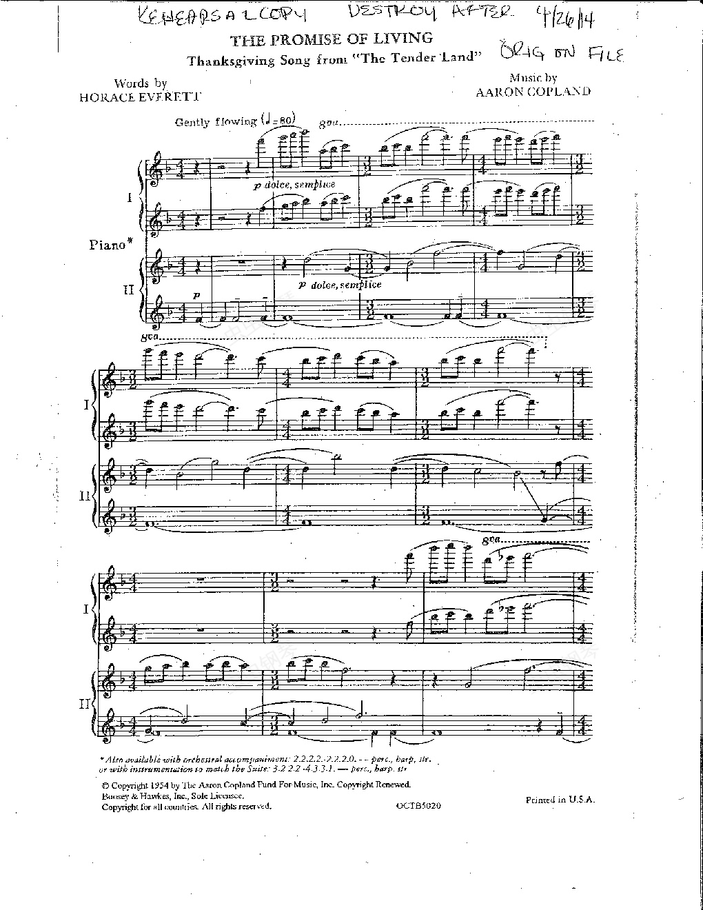钢琴谱:The promise of living