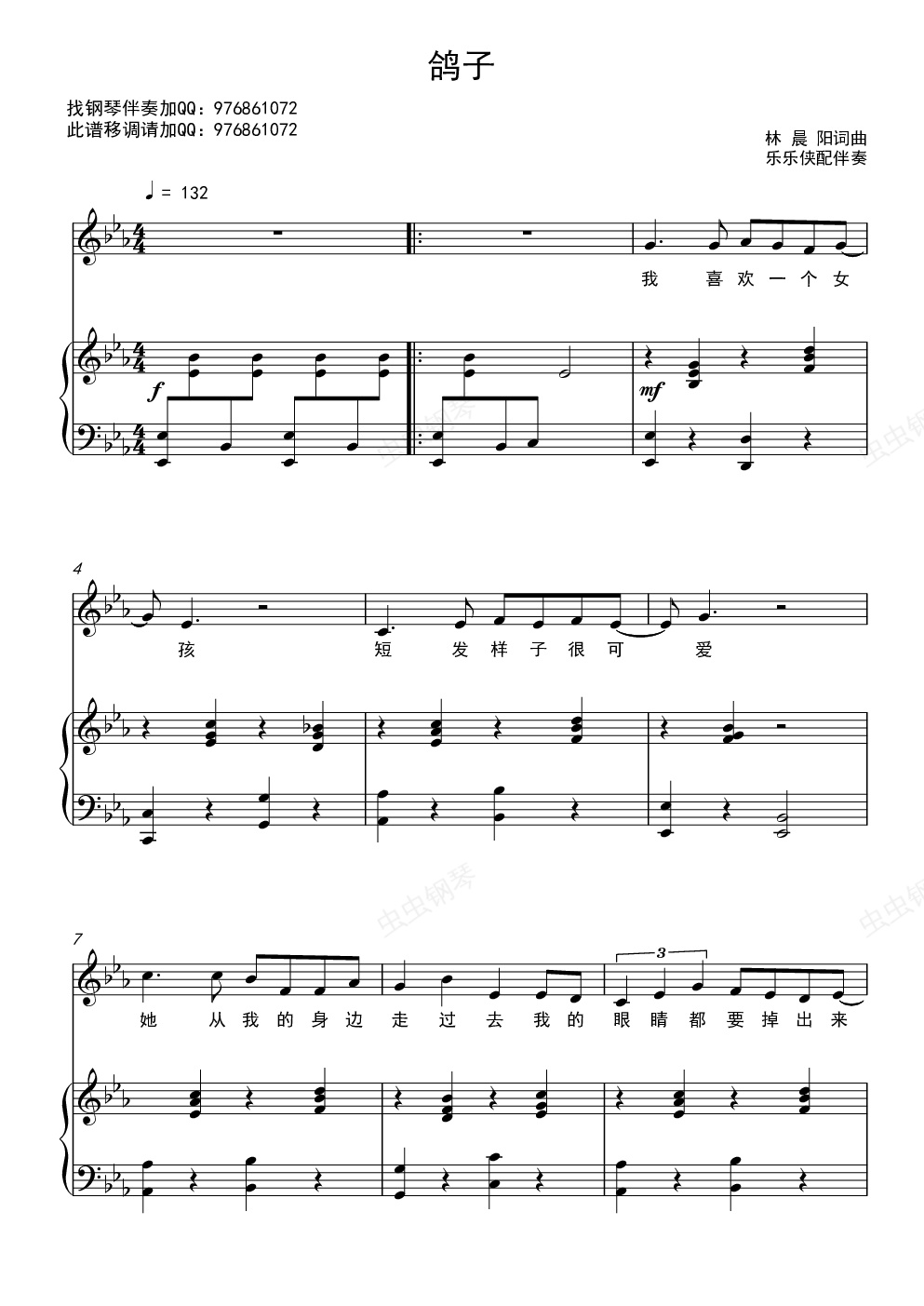 钢琴谱:鸽子(弹唱版)