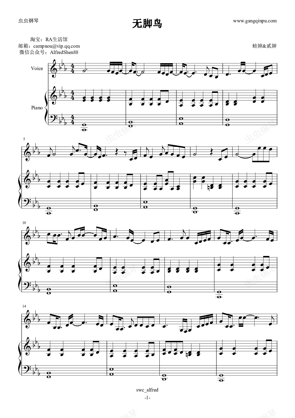 钢琴谱:无脚鸟