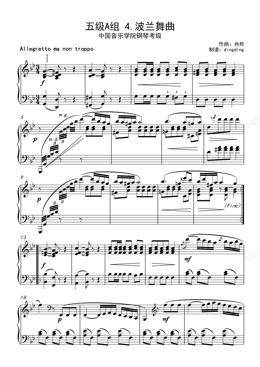 钢琴谱:中国音乐学院考级五级A组 4.波兰舞曲