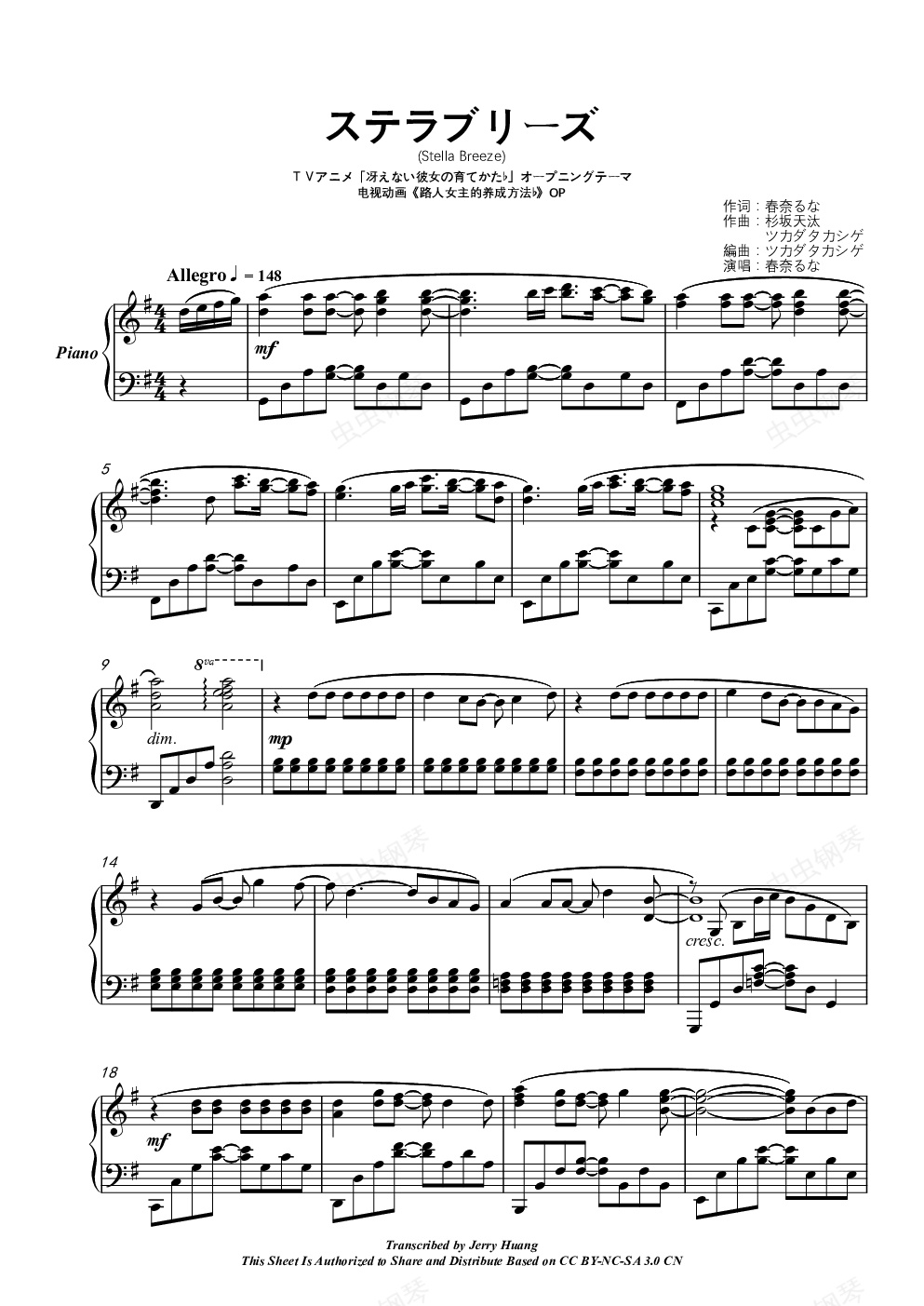 听说丸户老贼的《白色相簿3》又要被搬上银幕了,就算是抽空打谱也要为了情怀!虽然我的内心(和胃)是崩溃的(笑)(《白色相簿3》=《路人女主的养成方法》,《白色相簿4》=《我的青春恋爱物语果然有问题》,《白色相簿5》=《伪恋》),不知道丸户老贼又要收多少刀片(笑)。这首《ステラブリーズ》是(4月13号)放送的电视动画《路人女主的养成方法》第二季的OP,仍由为第一季OP献唱的歌手、索尼音乐娱乐集团旗下签约艺人春奈るな演唱,收录这首的专辑预计于5月3日发售。音频是从爱奇艺的视频中翻录下来的,本人已经用做了最大程度的修正了,如果依旧是渣音质的话还请轻喷...不知道有木有dalao和julao开这个坑了,不过如果有的话纯粹是意外,各位dalao如果有各种不满的话,希望轻喷>_<———————————————————————————————————————————————————————————— 好的,接下来是吐槽时间(笑)。路人女主第二季第0集依旧是熟悉的味道,依旧是标准的卖肉开车,依旧是神似上一季的福利(就连学姐和英梨梨的日常吐槽以及美智留游泳的姿势都一样),依旧是丸户老贼的官方吐槽开场,依旧是豪华的声优阵容和精湛的音乐制作,依旧是废柴男主和路人女主、青梅竹马、堂妹表亲、毒舌学姐和天降学妹欢乐的(后宫)日常,依旧是各种NETA信手拈来。所谓的OP其实就是官方MAD,基本上就是前情提要(要),制作方A-1还有你的(亲爹)控股公司不可能没钱的吧?!你的后台是全球第一大唱片公司(无误)日本索尼音乐娱乐集团(Sony Music Inc., SMEI),每年坐拥几百亿日元的流动资产啊(笑)那种画风中飘着一种土豪和烧钱的气息可不能没了啊(笑)。———————————————————————————————————————————————————————————— 说到NETA,A爹一定是玩梗的高手。下面这张图里,出现了《苍之彼方的四重奏》、《》、《魔法科高校的劣等生》、《亚人》等等ACG作品的相关内容,不知大家发现了没有(笑)。果然是有钱的公司,玩梗都可以玩出新高度。 [IMG]/pu/2017/4/11/__3055__[/IMG] ———————————————————————————————————————————————————————————— 但是撇开一切,从各个方面来看,这部动画都确实是一部良心动画,值得一追。———————————————————————————————————————————————————————————— 音源:The 钢琴音源(4892MB),基于,读取时内存占用约181MB 下载地址:/s/1 宿主 8 操作环境 10 试听和原曲备用链接:/s/1 注:PDF文件和MP3试听皆基于 知识共享 署名-非商业性使用-相同方式共享 3.0中国大陆 许可共享,版权所有。 [IMG]/pu/2017/4/11/__3055__[/IMG]