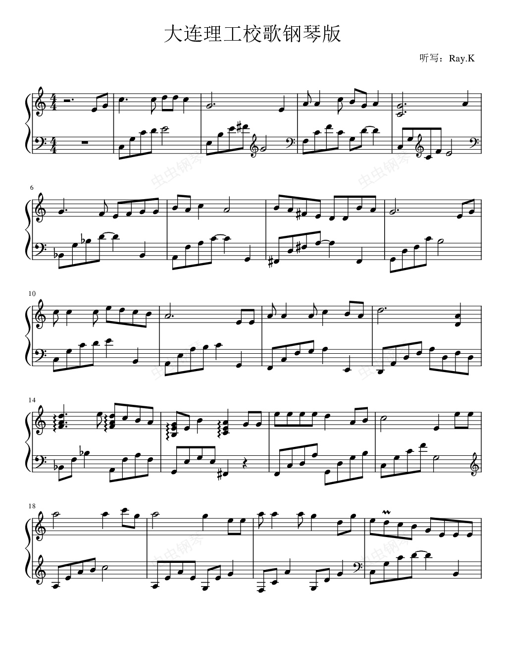 钢琴谱:大连理工校歌钢琴版