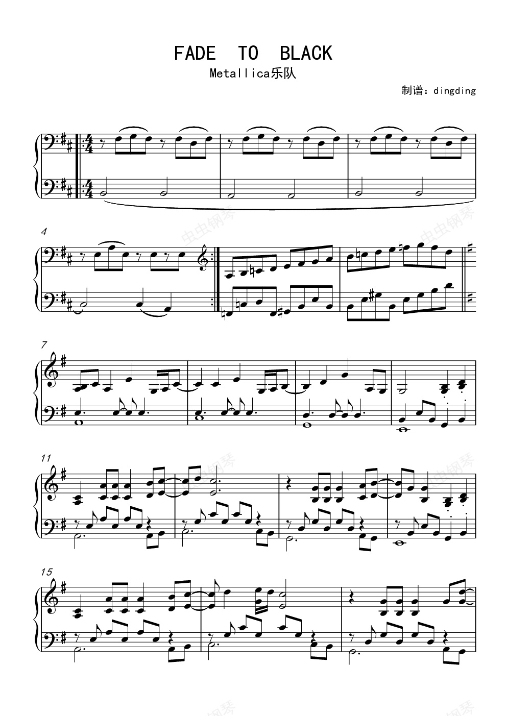 钢琴谱:FADE TO BLACK Metallica乐队