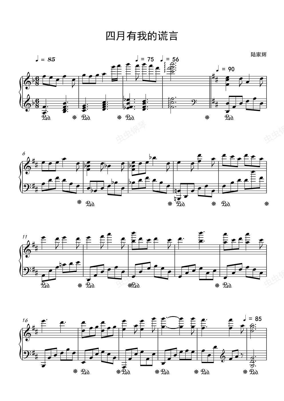 钢琴谱:四月有我的谎言