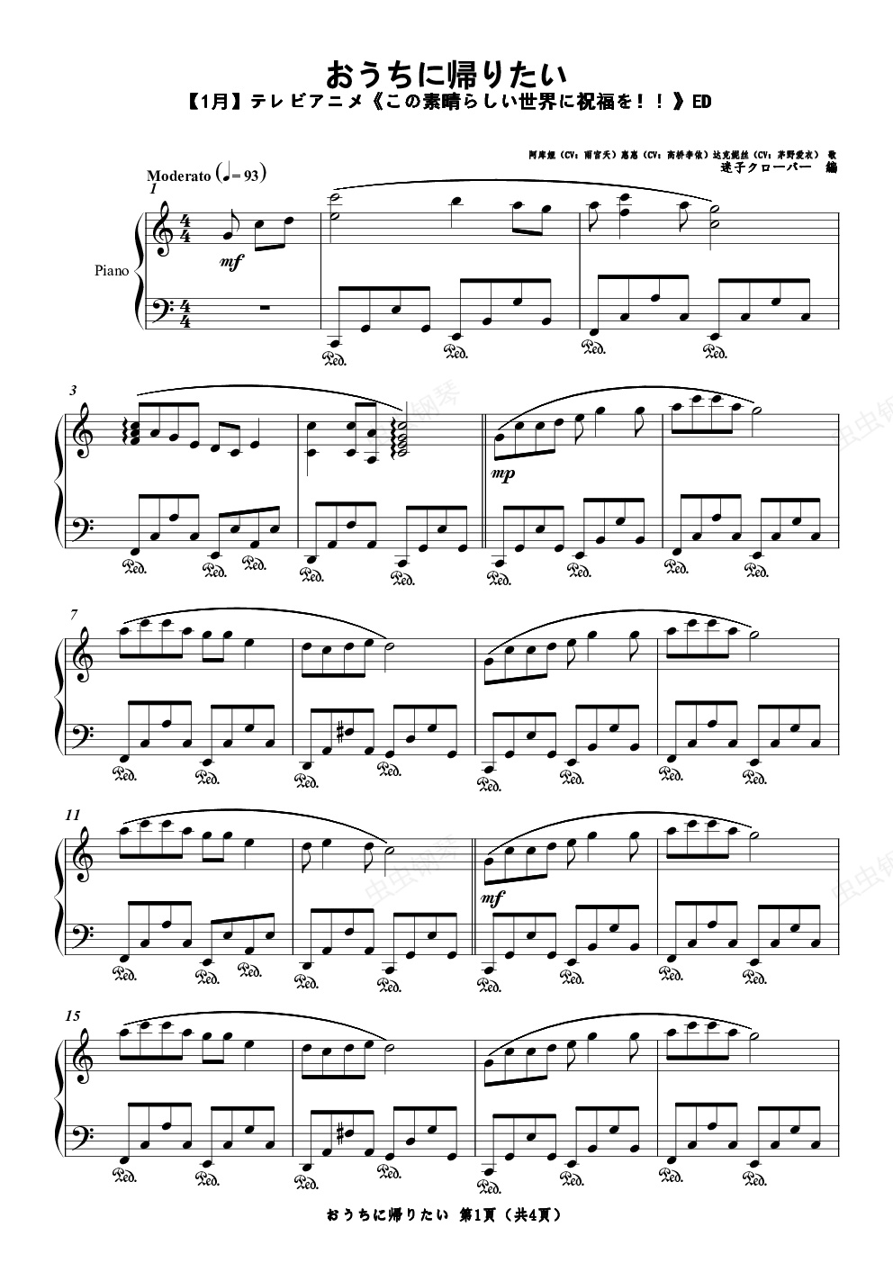 钢琴谱:【为美好的世界献上祝福! ED】おうちに帰りたい